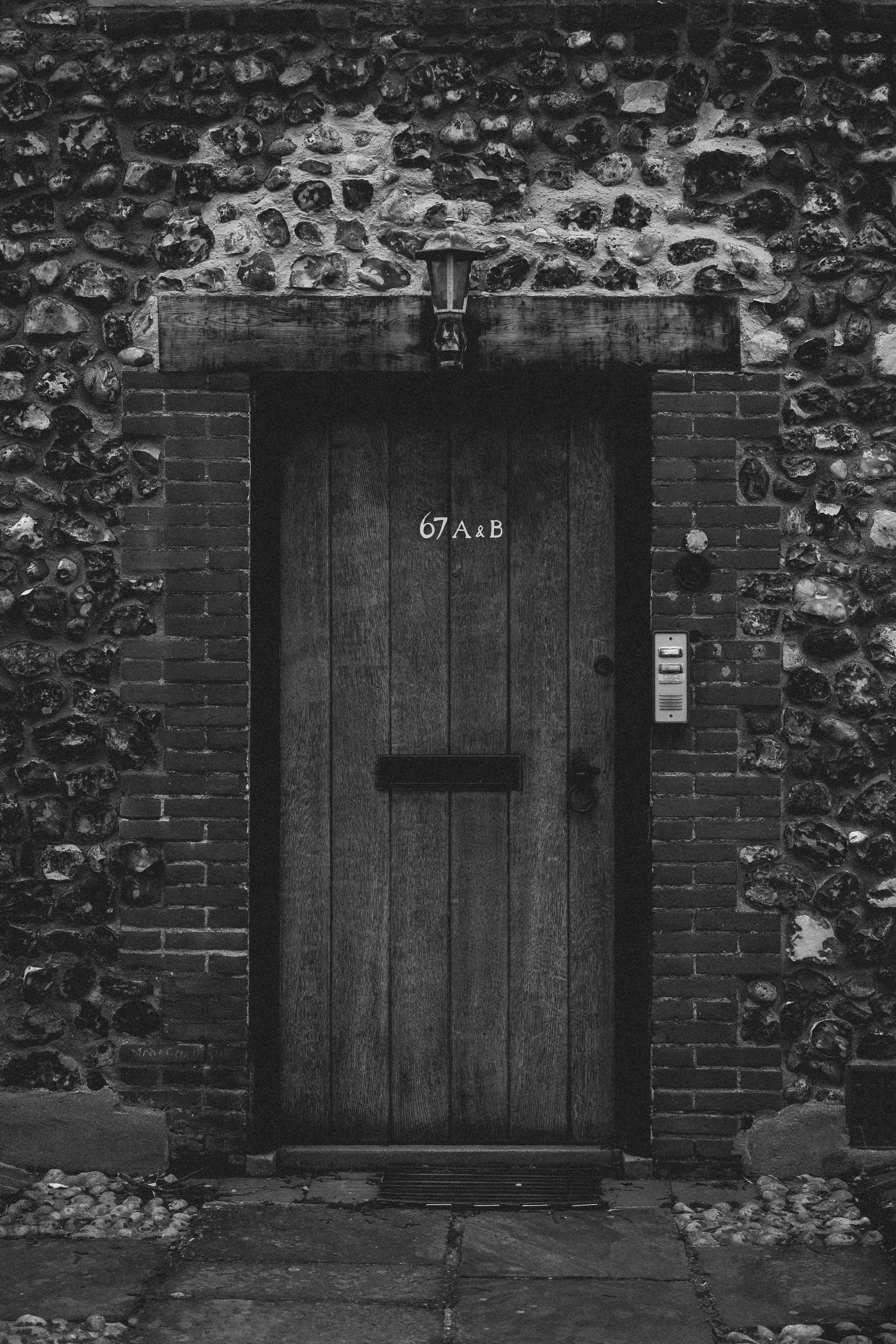 Black and white image of a woman in a robe posing in an intricately designed doorway.