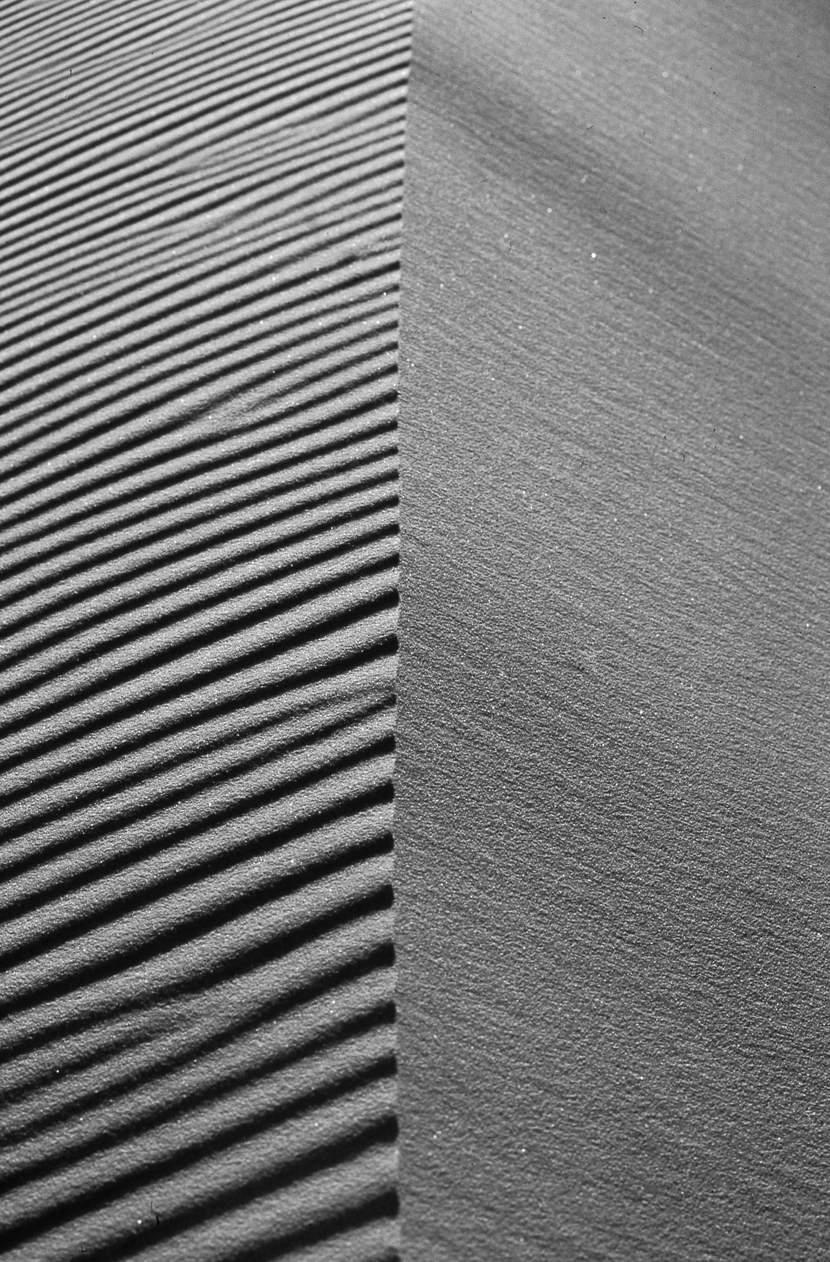 Black and white abstract view of sand dunes in Merzouga, Morocco, showcasing unique textures.
