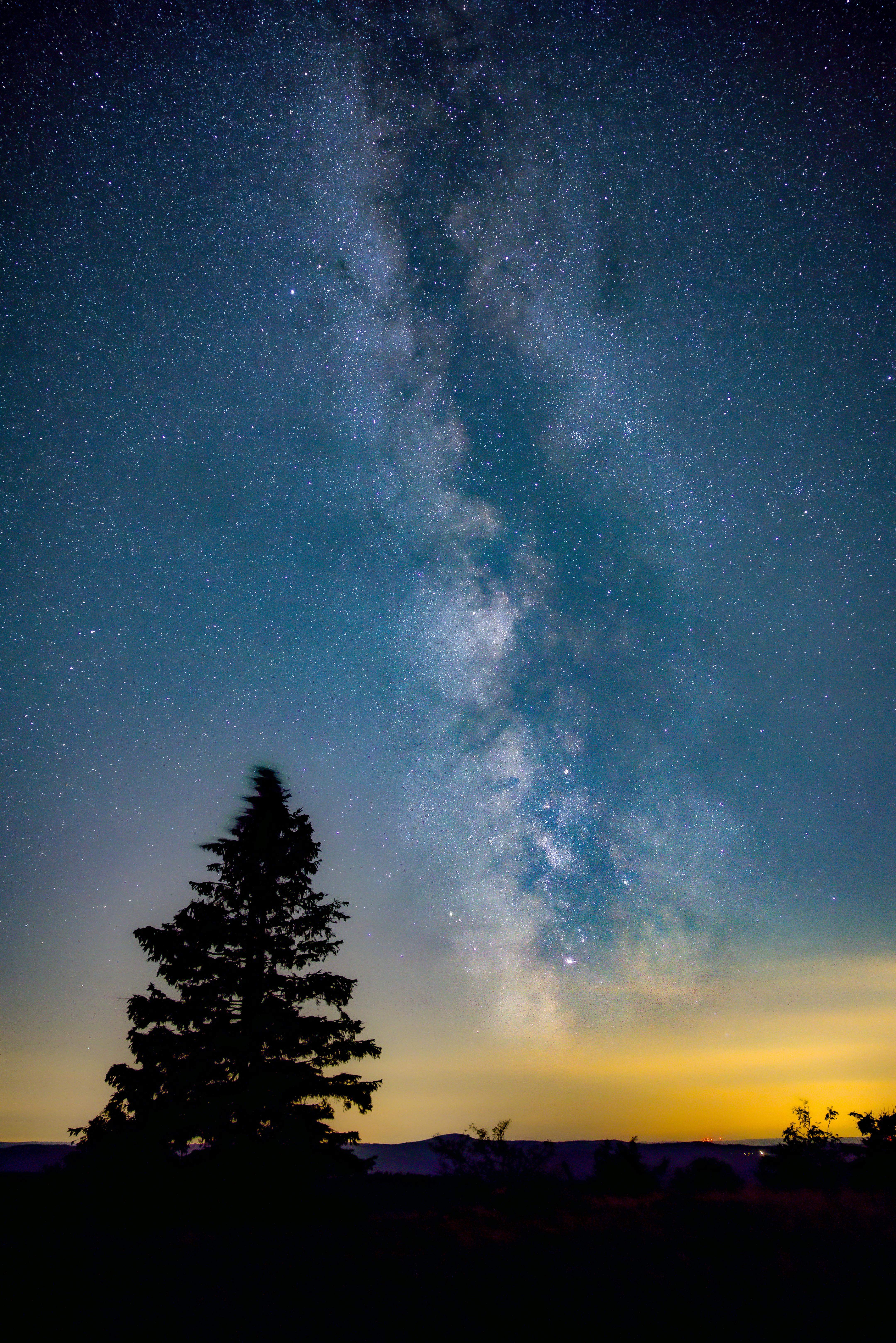 Breathtaking view of the Milky Way galaxy with a silhouetted tree, captured at twilight.