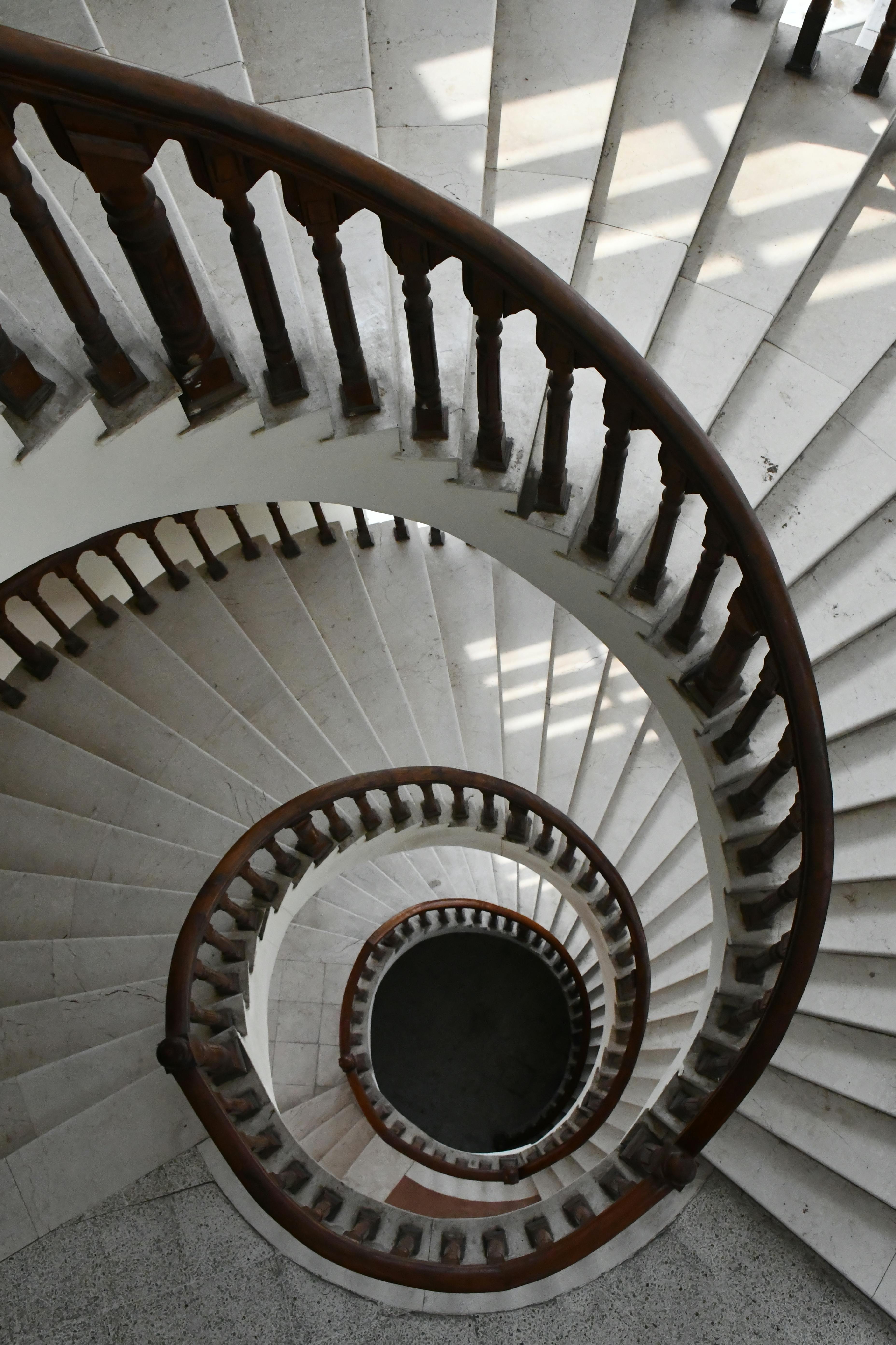 A captivating view of a spiral staircase in Faisalabad, showcasing elegant design and wooden architecture.