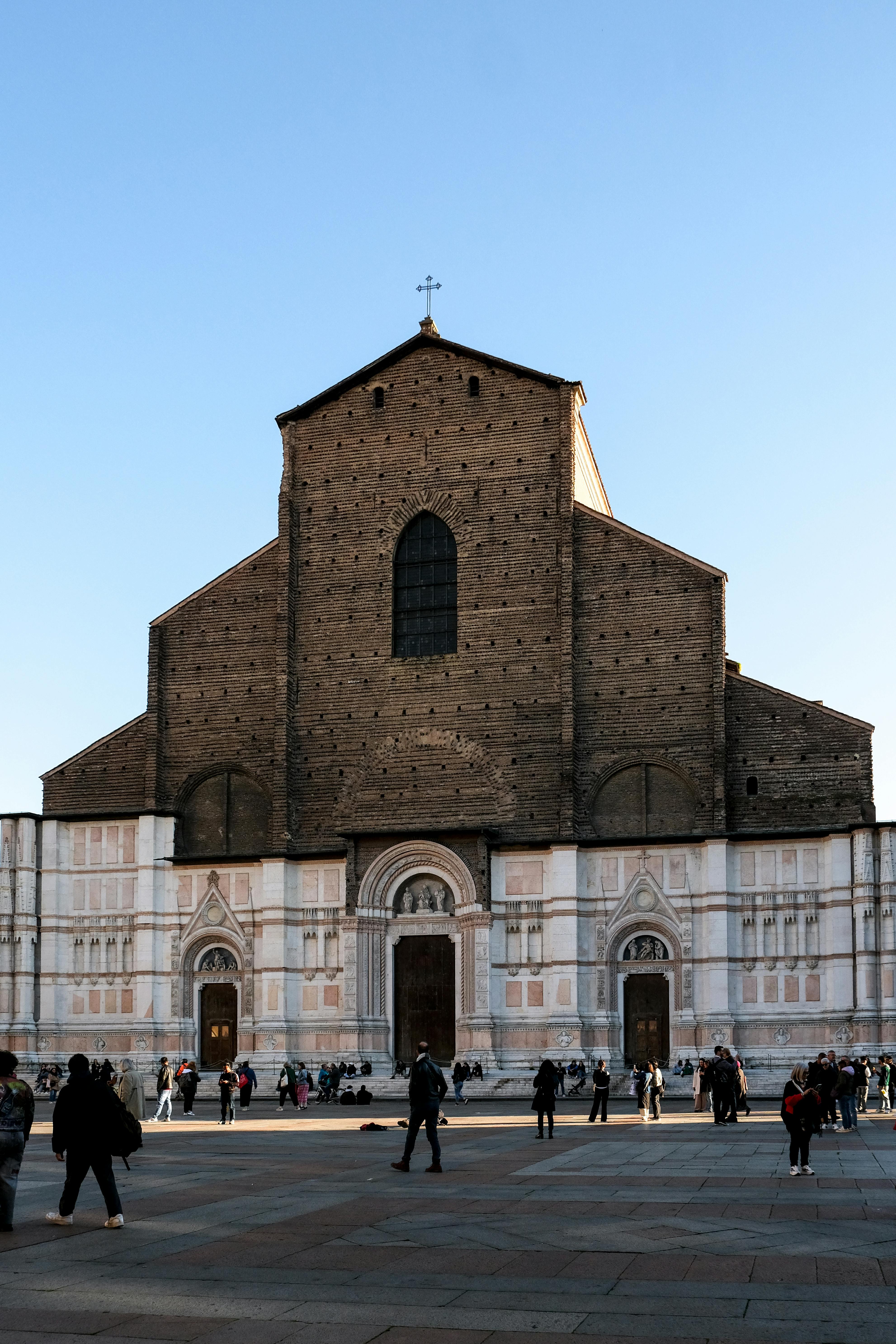 Stunning view of Basilica di San Petronio in Bologna's vibrant city square.