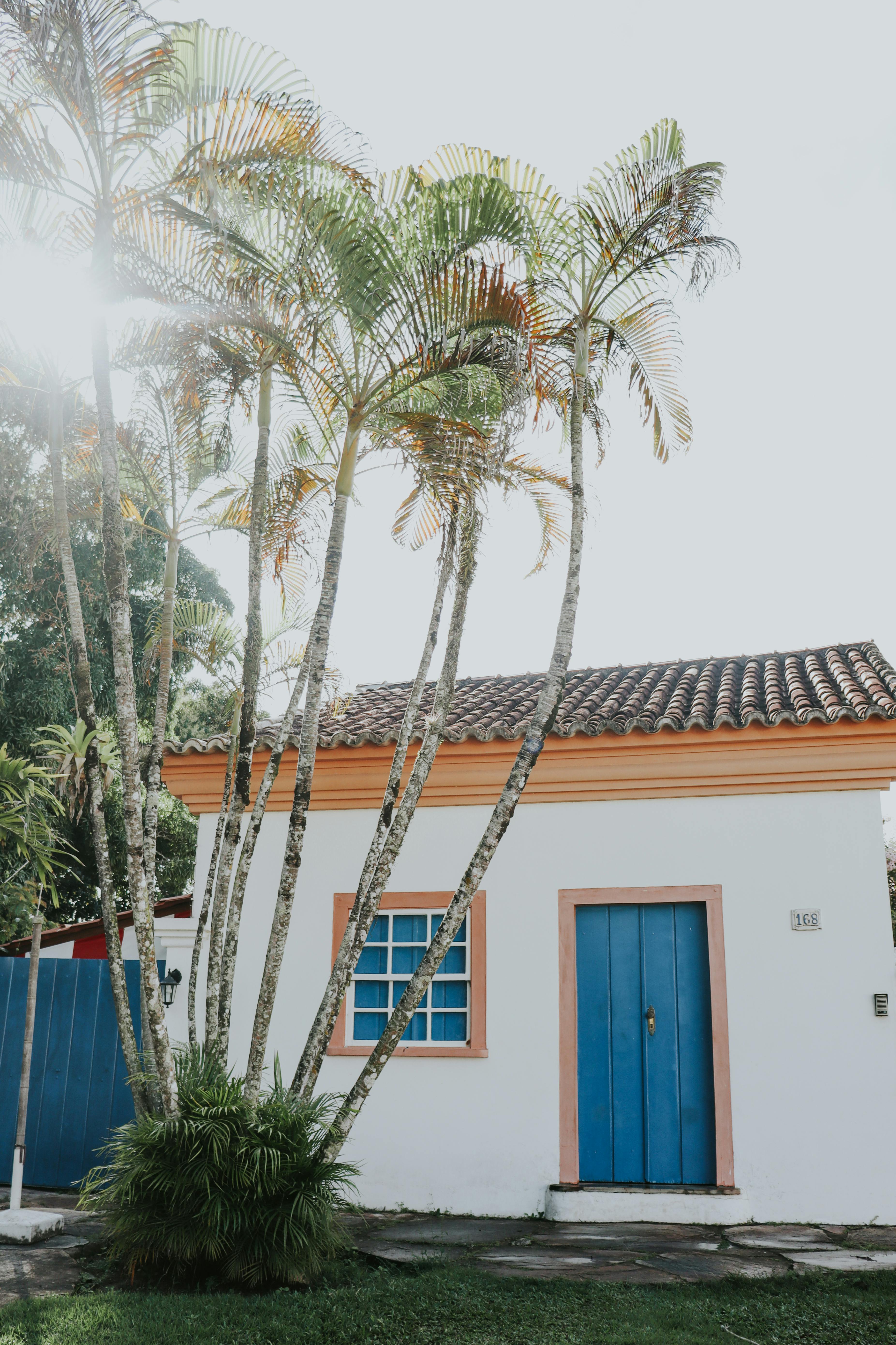 Colonial-style house with palm trees in Porto Seguro, Bahia, Brazil.