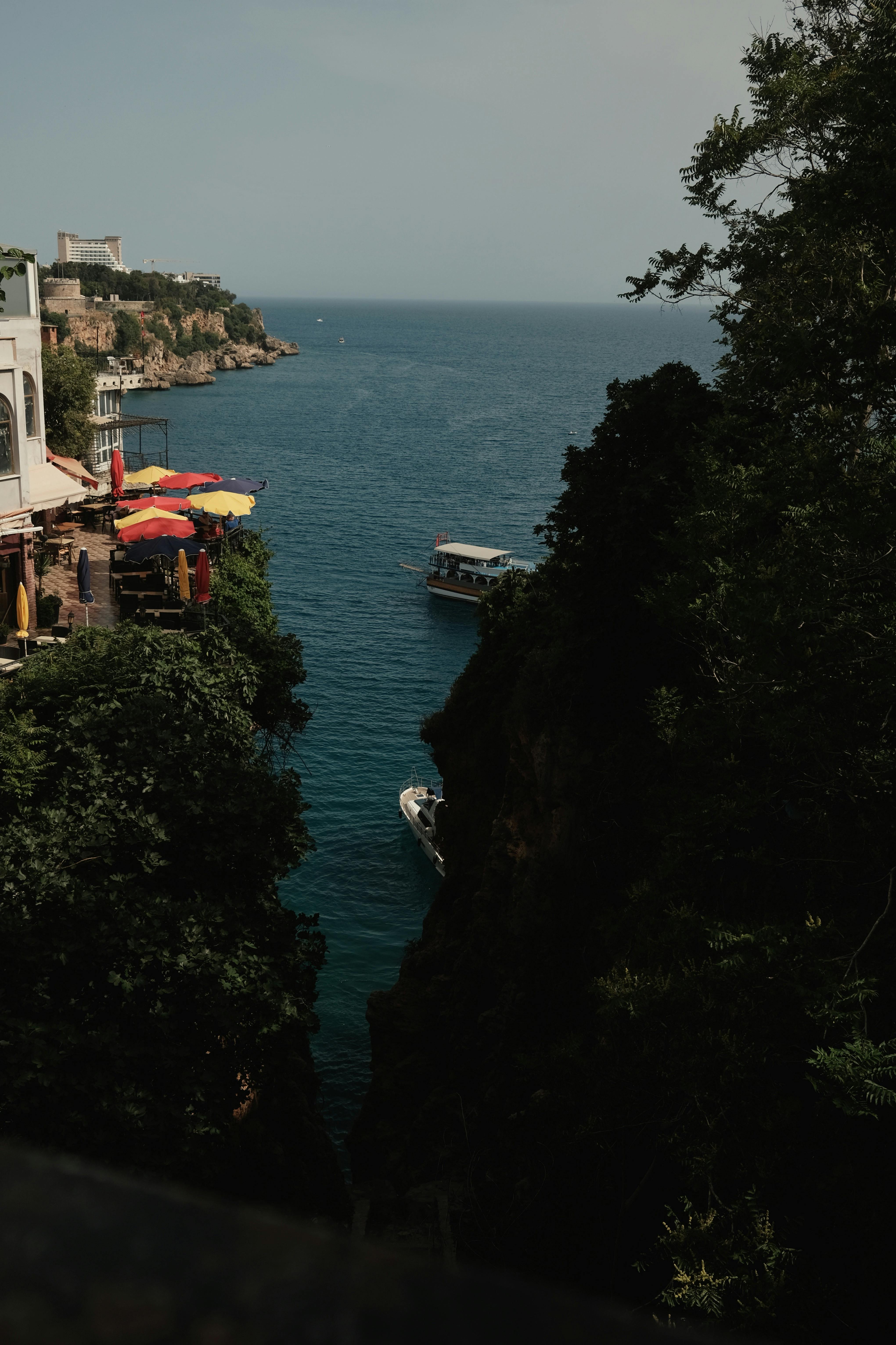 Beautiful view of Antalya's coast with cliffs and sea, perfect for summer travel inspiration.