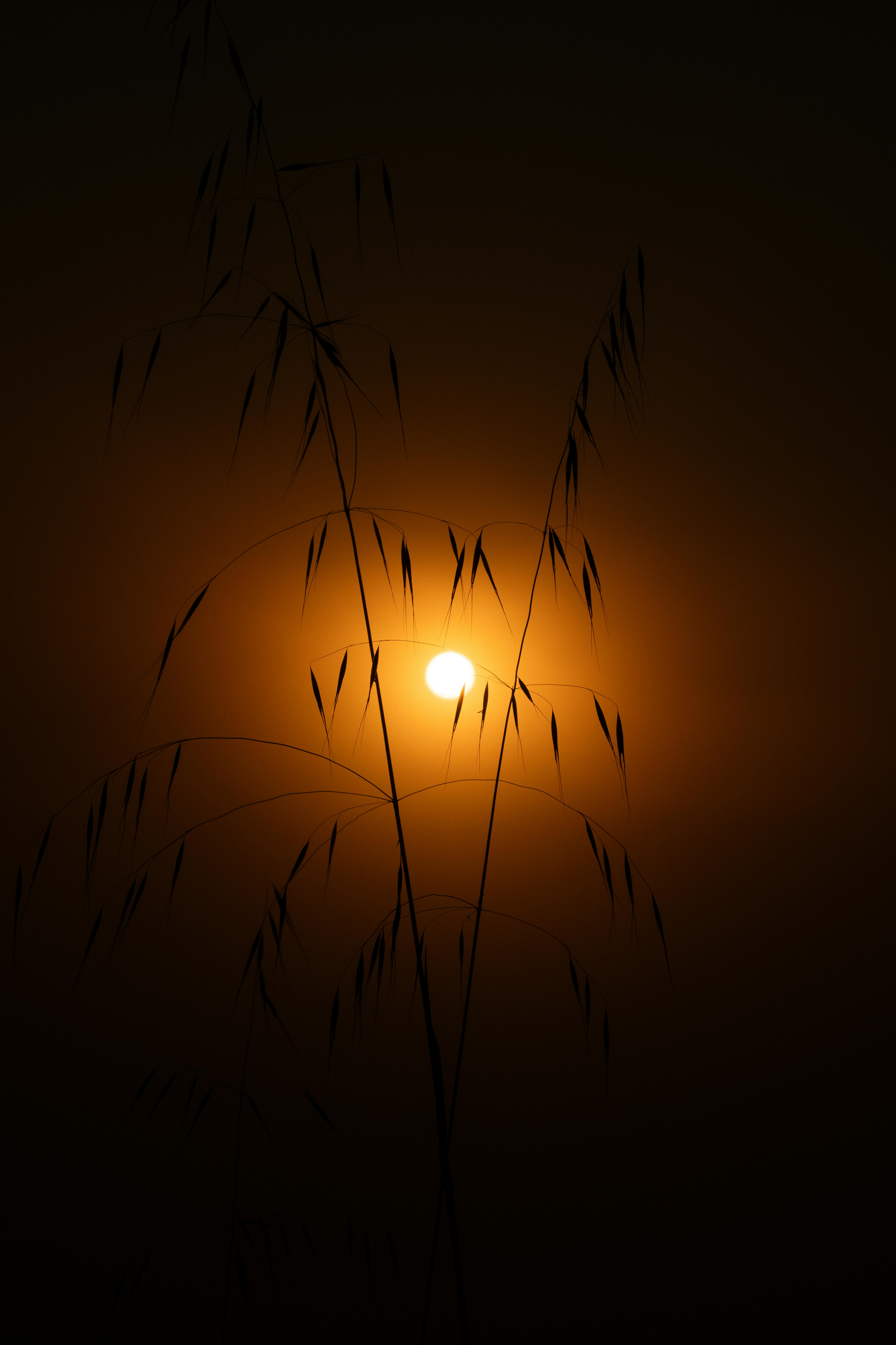 A beautiful silhouette of tall grass outlined against a vibrant sunset, creating a dramatic natural scene.