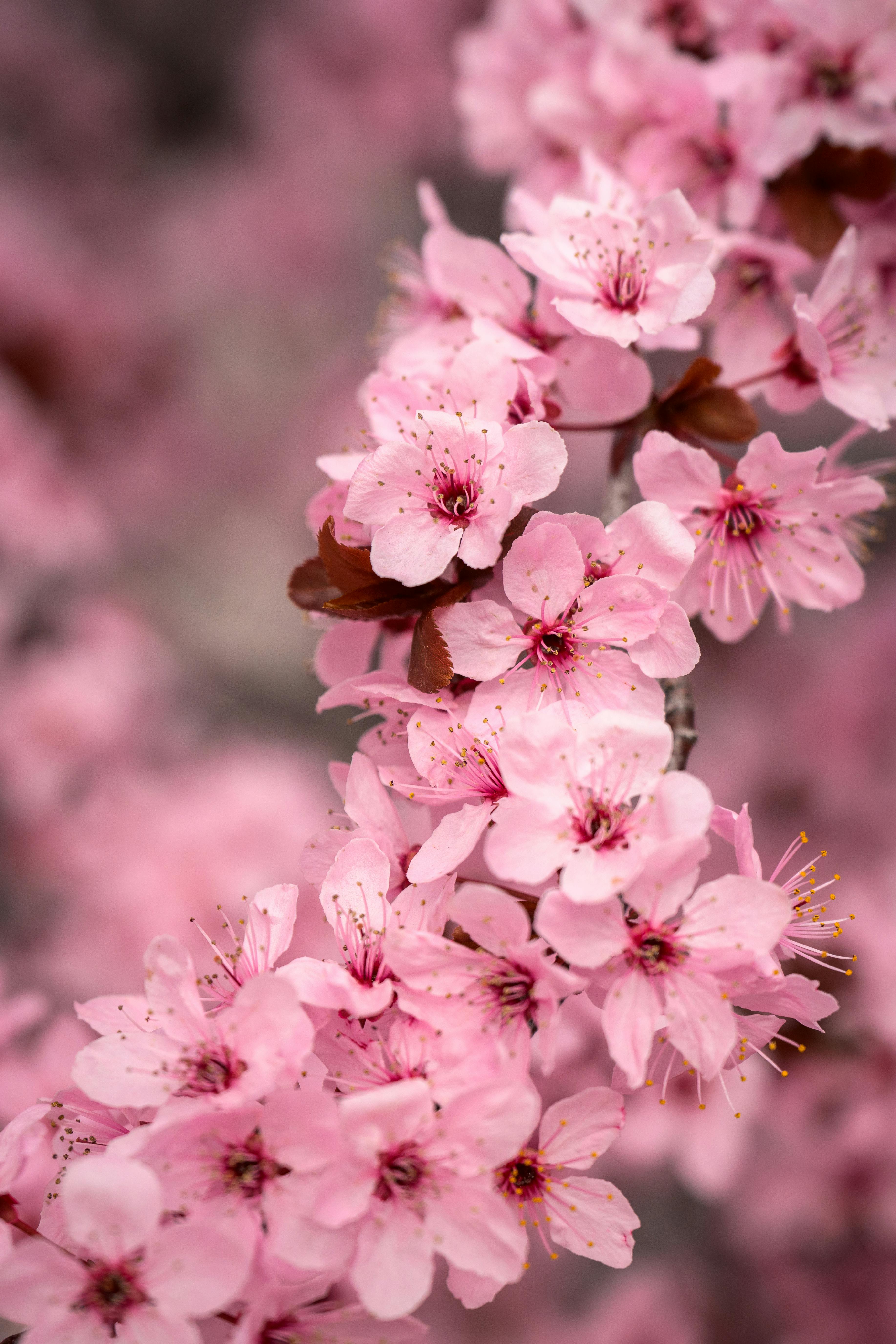 Close-up of pink cherry blossoms in spring, showcasing natural beauty and vivid colors.