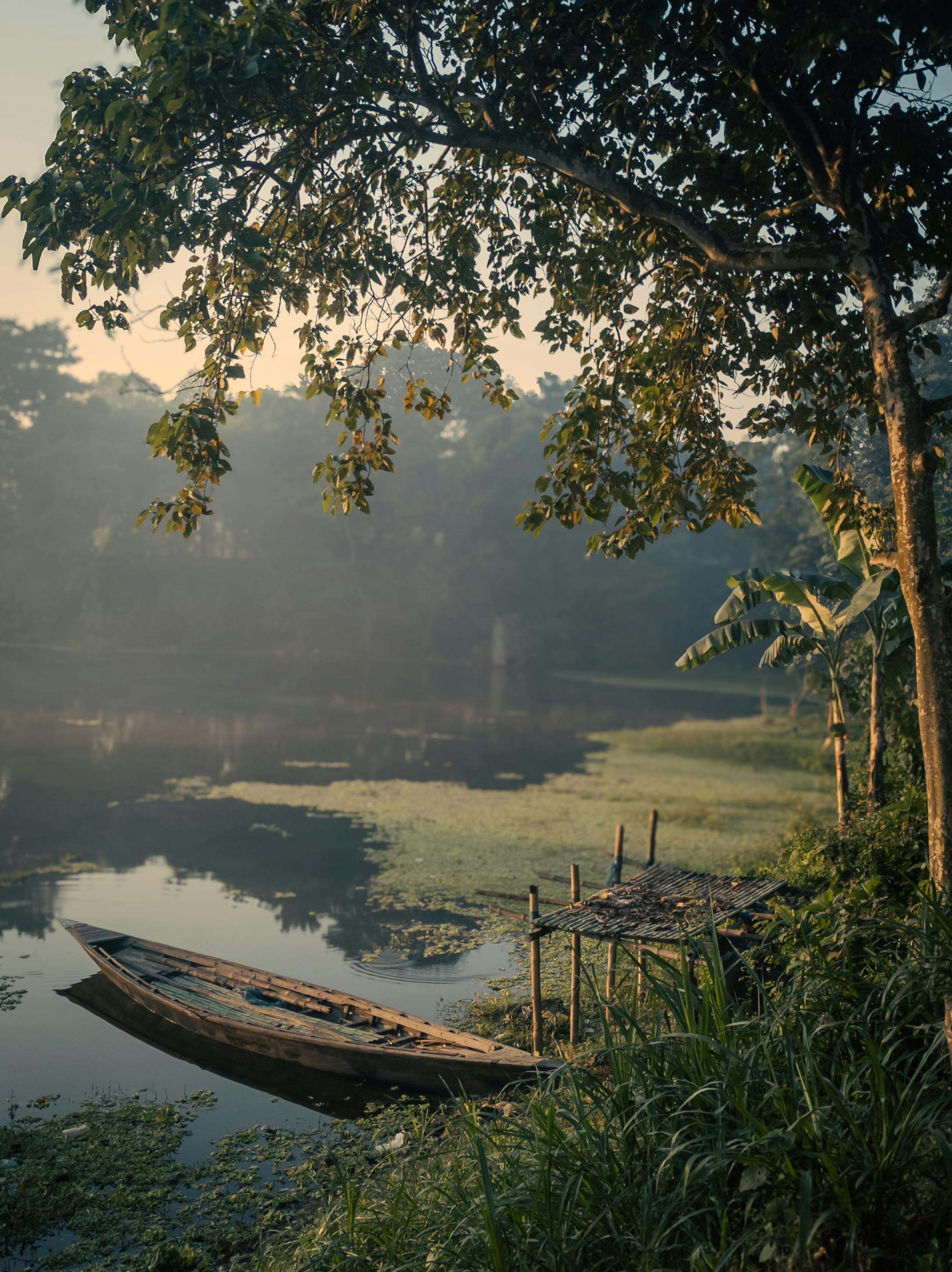 Peaceful view of a boat on Lake Victoria in Homa Bay, Kenya, with serene blue waters.