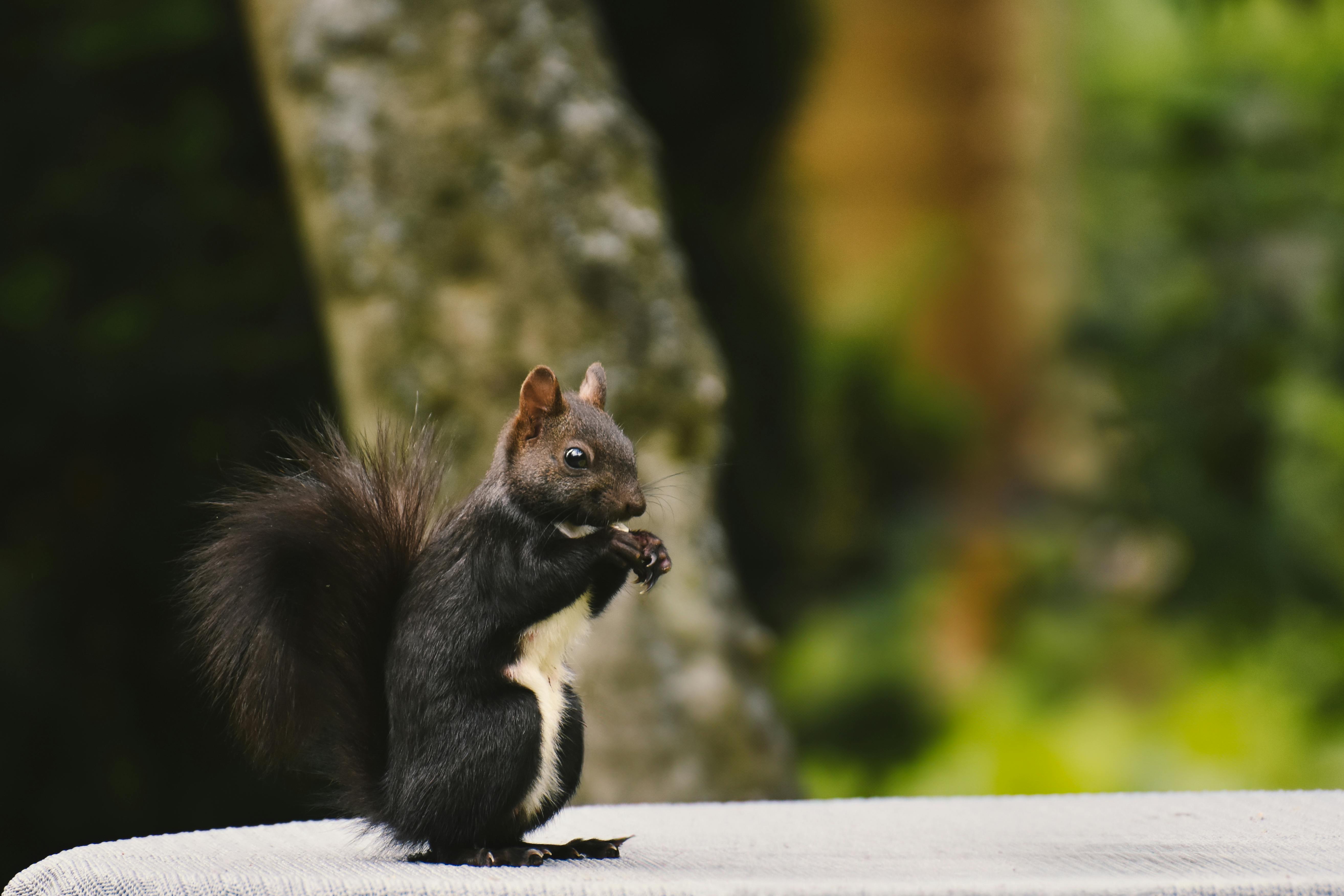 Cute squirrel eating with tree backdrop, perfect for wildlife and nature photography enthusiasts.