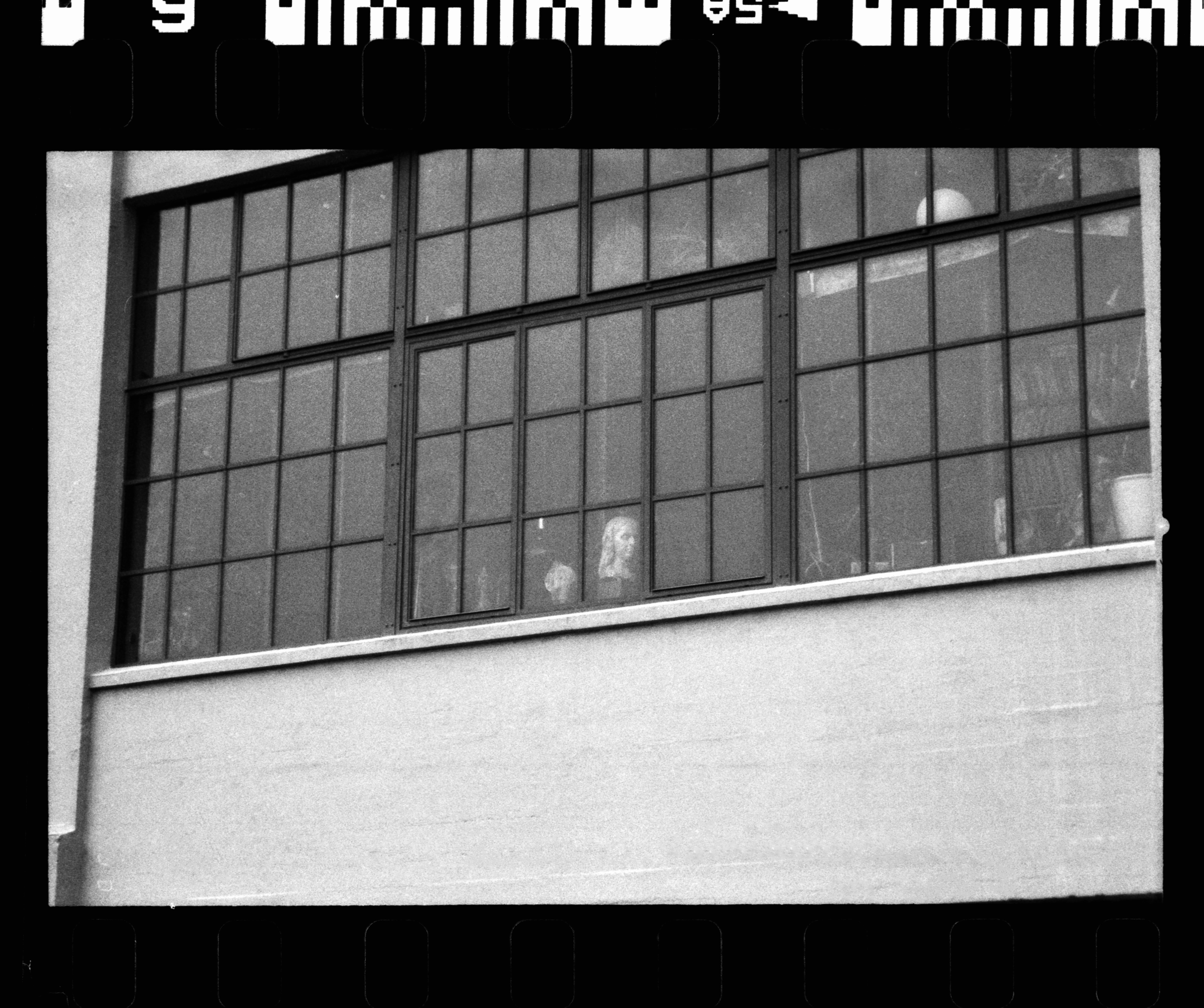 Black and white shot of a factory window capturing a serene indoor moment.
