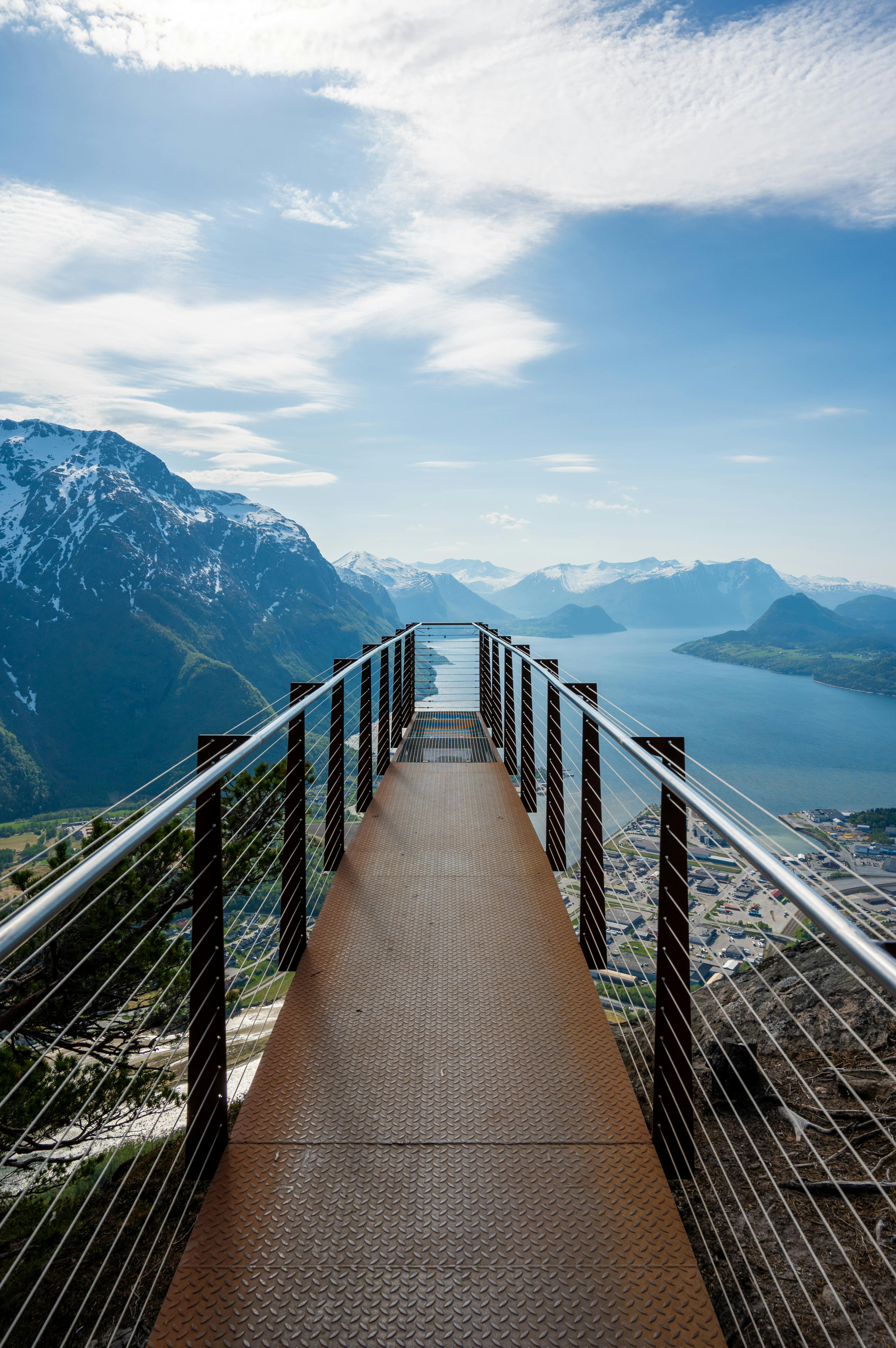 Breathtaking view of fjords and mountains from viewing platform in Åndalsnes, Norway.