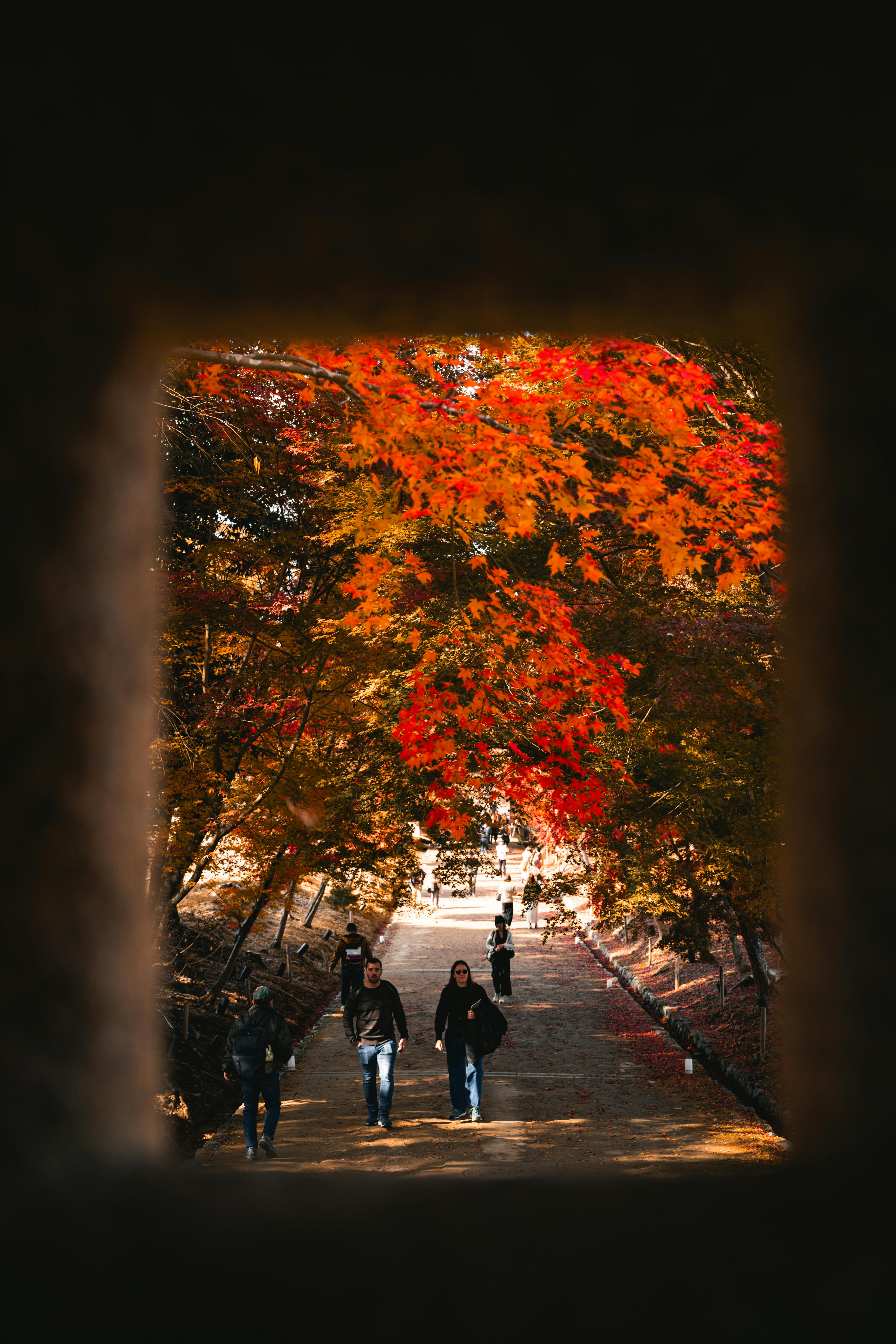 A mesmerizing view of the full moon through autumn trees in Lebanon, creating a tranquil night ambiance.