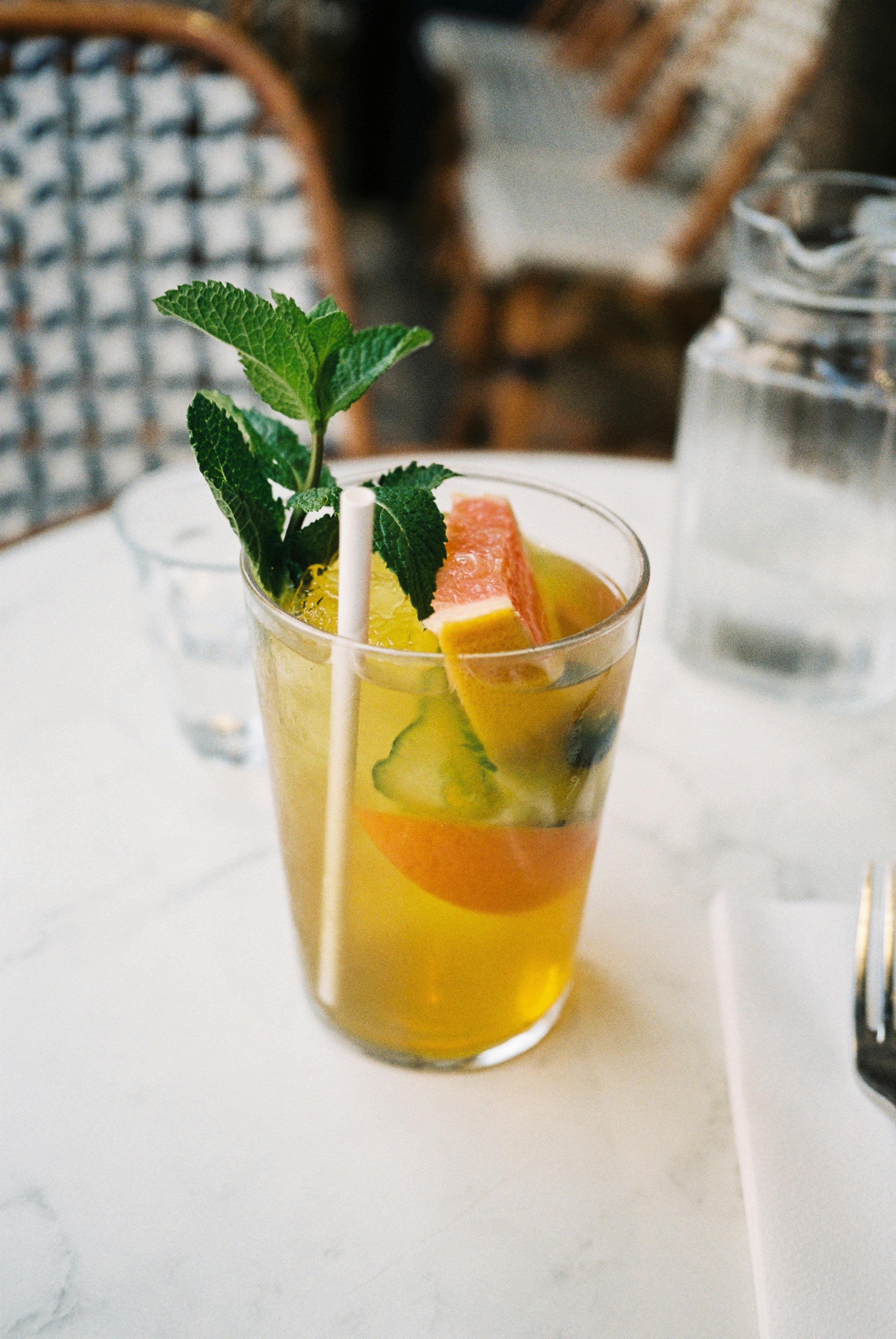 A bright citrus and mint mocktail served in a glass, perfect for a refreshing summer day.