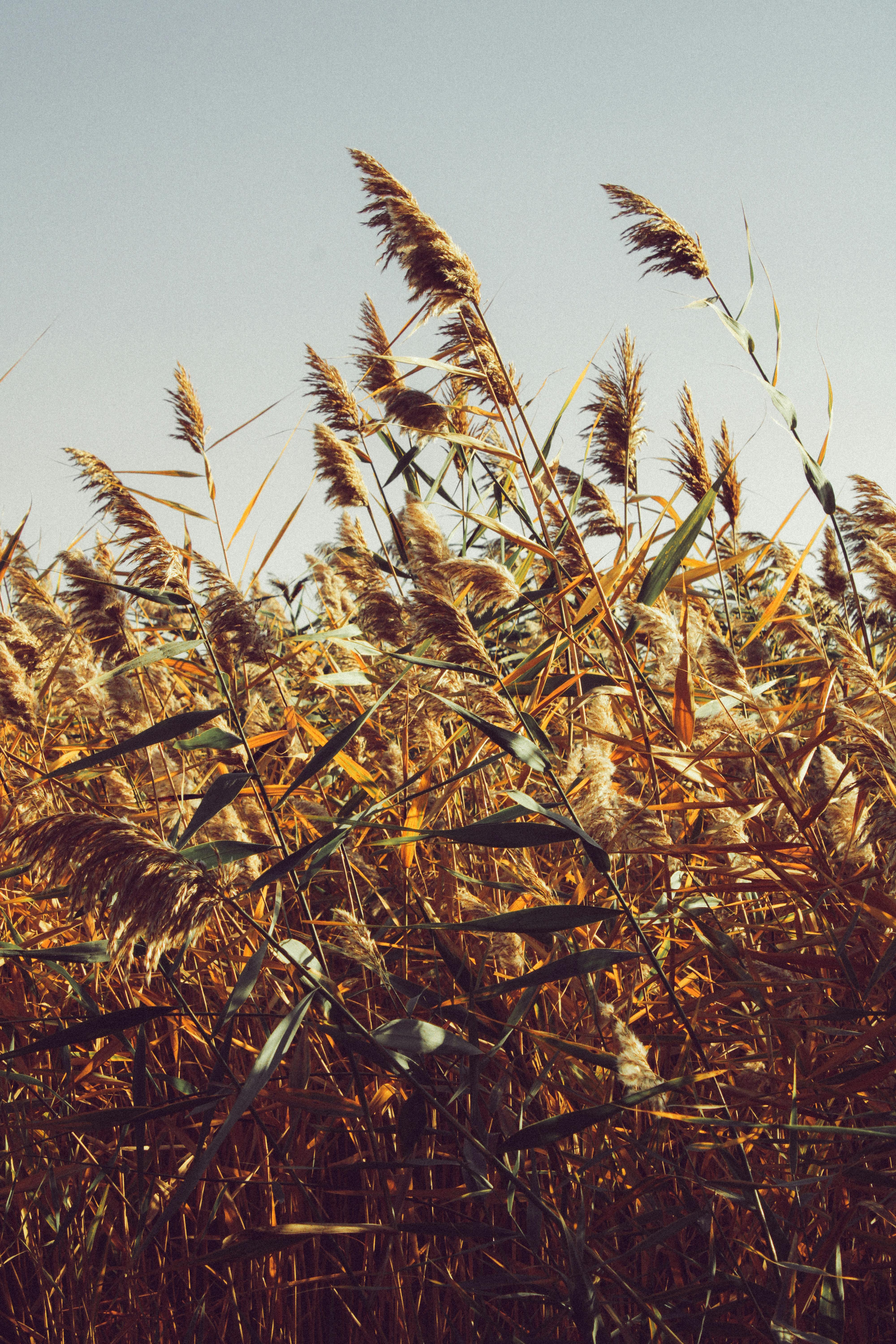Graceful swaying reeds under a bright sky, perfect for a calming nature vibe.