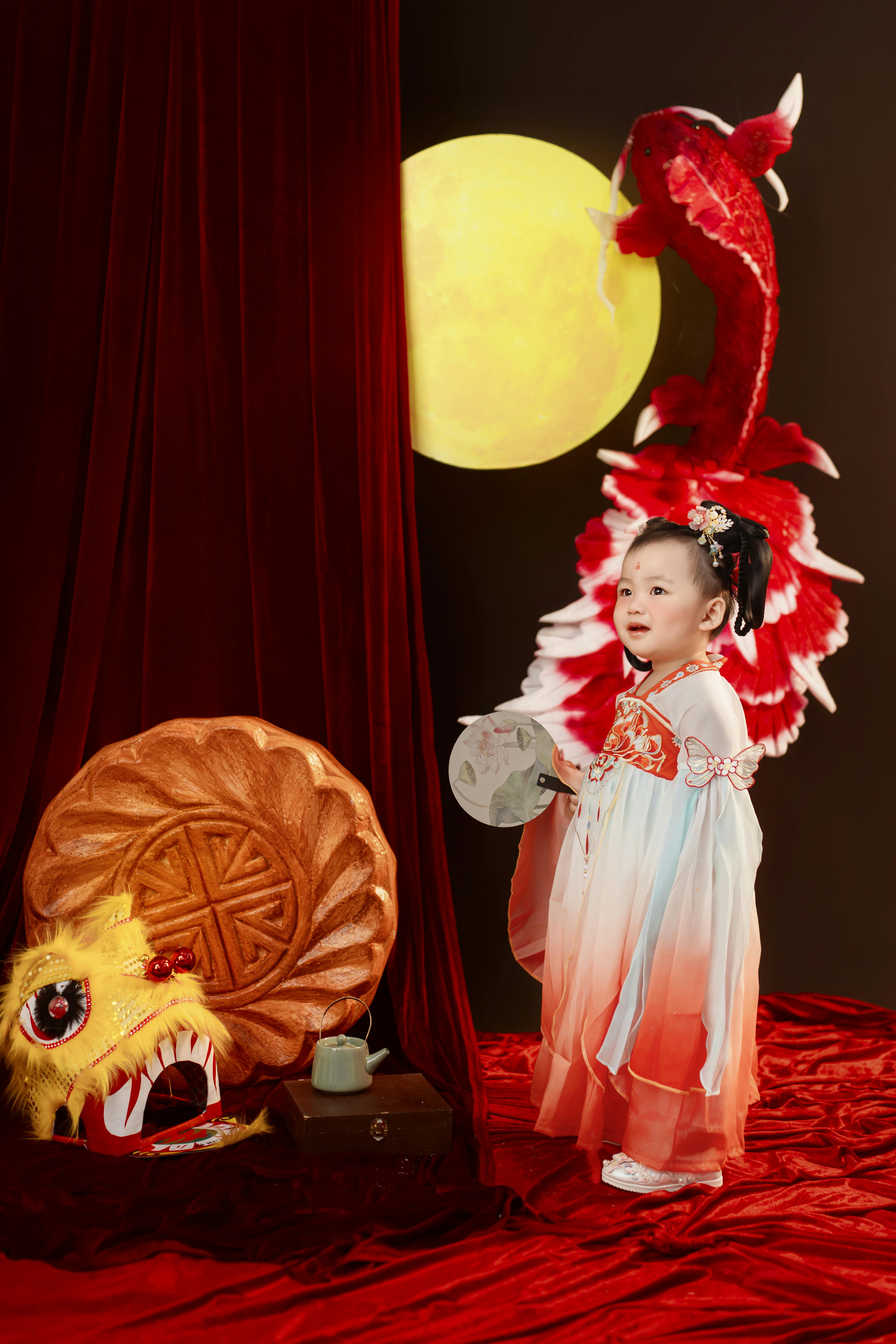 Charming portrait of a child in traditional Vietnamese dress during a festive celebration.