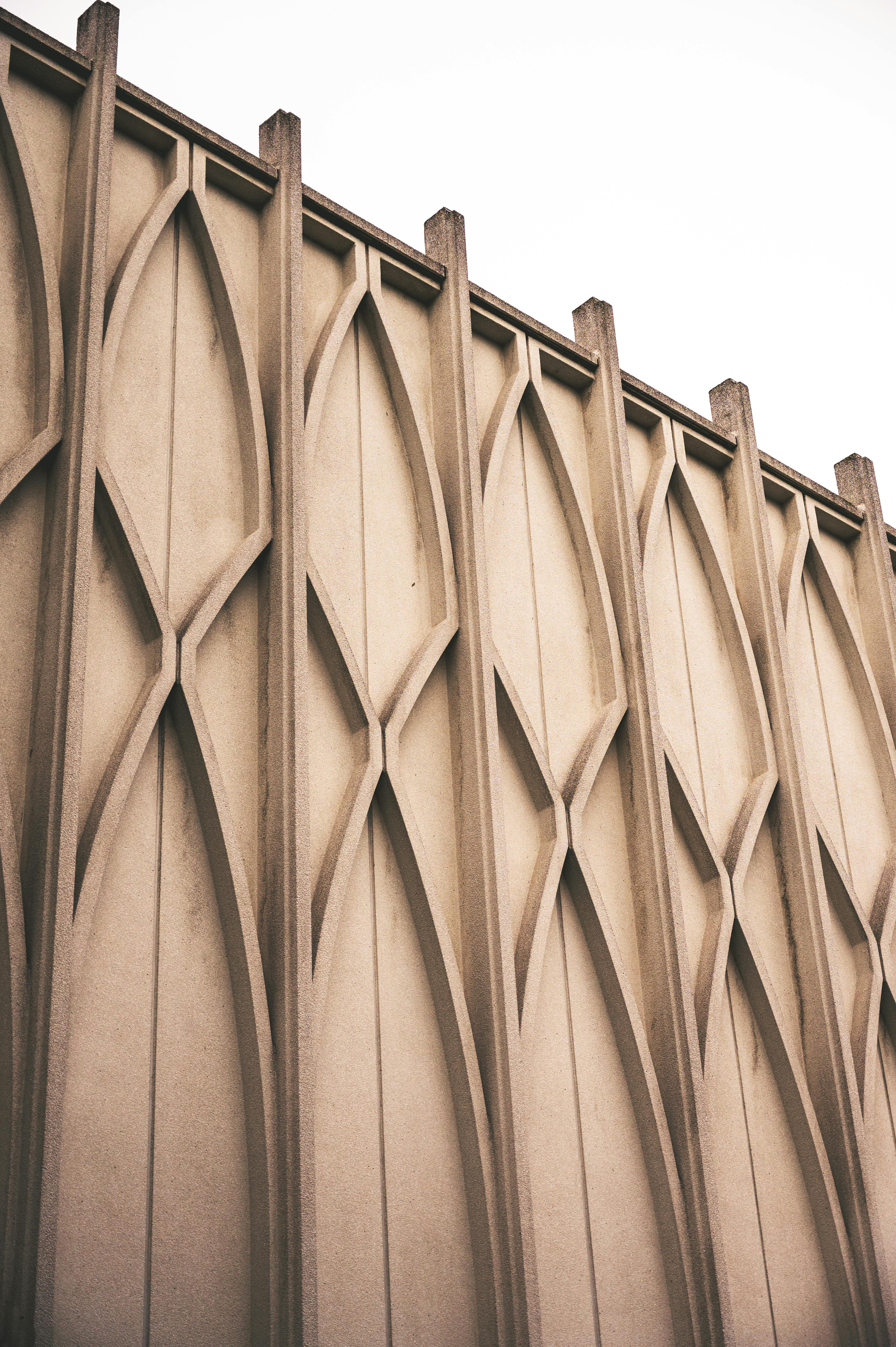 Close-up view of a modern architectural wall in Seattle featuring intricate geometric patterns.