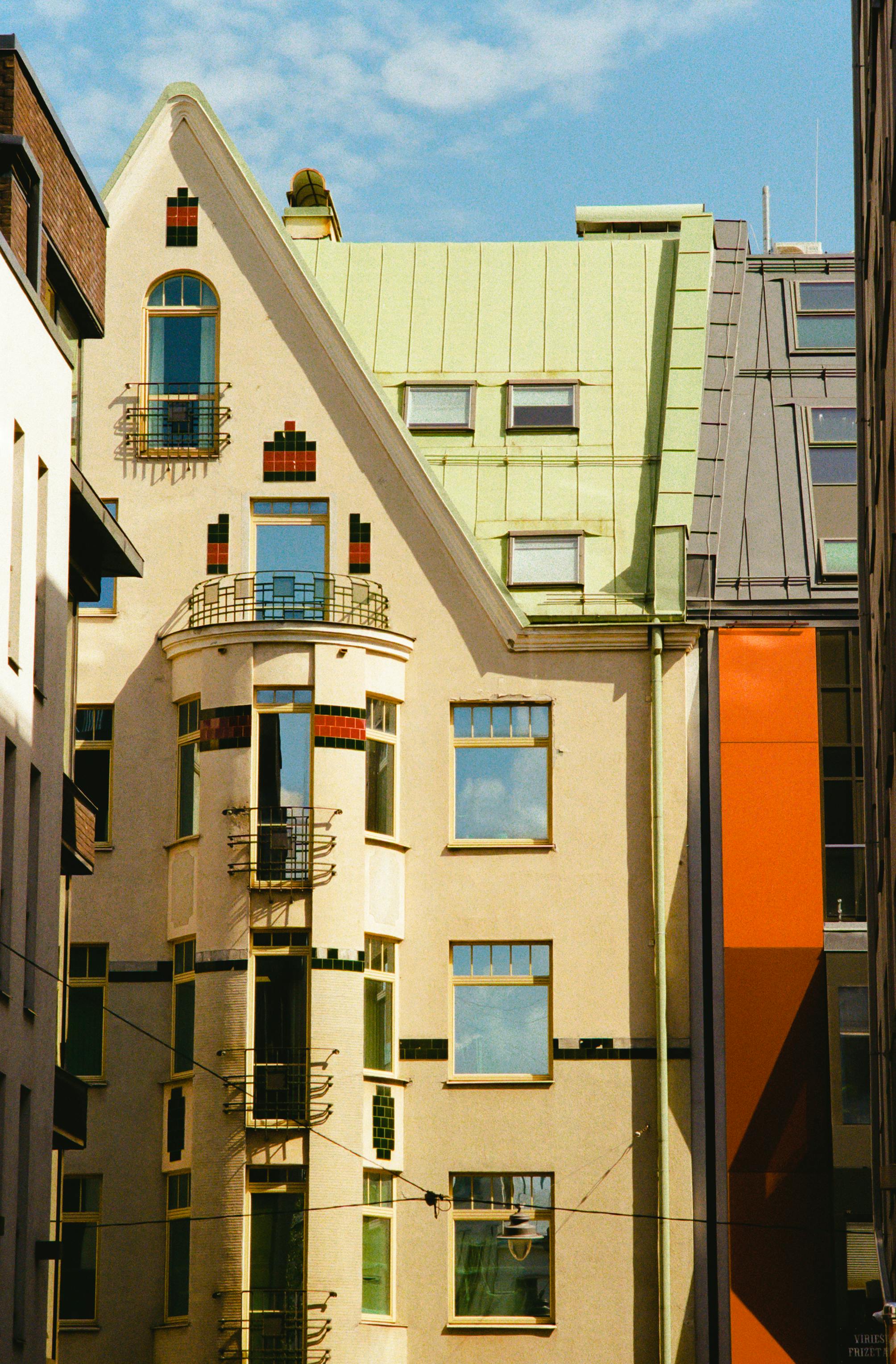 European architectural style of buildings with vibrant colors in Riga, Latvia.