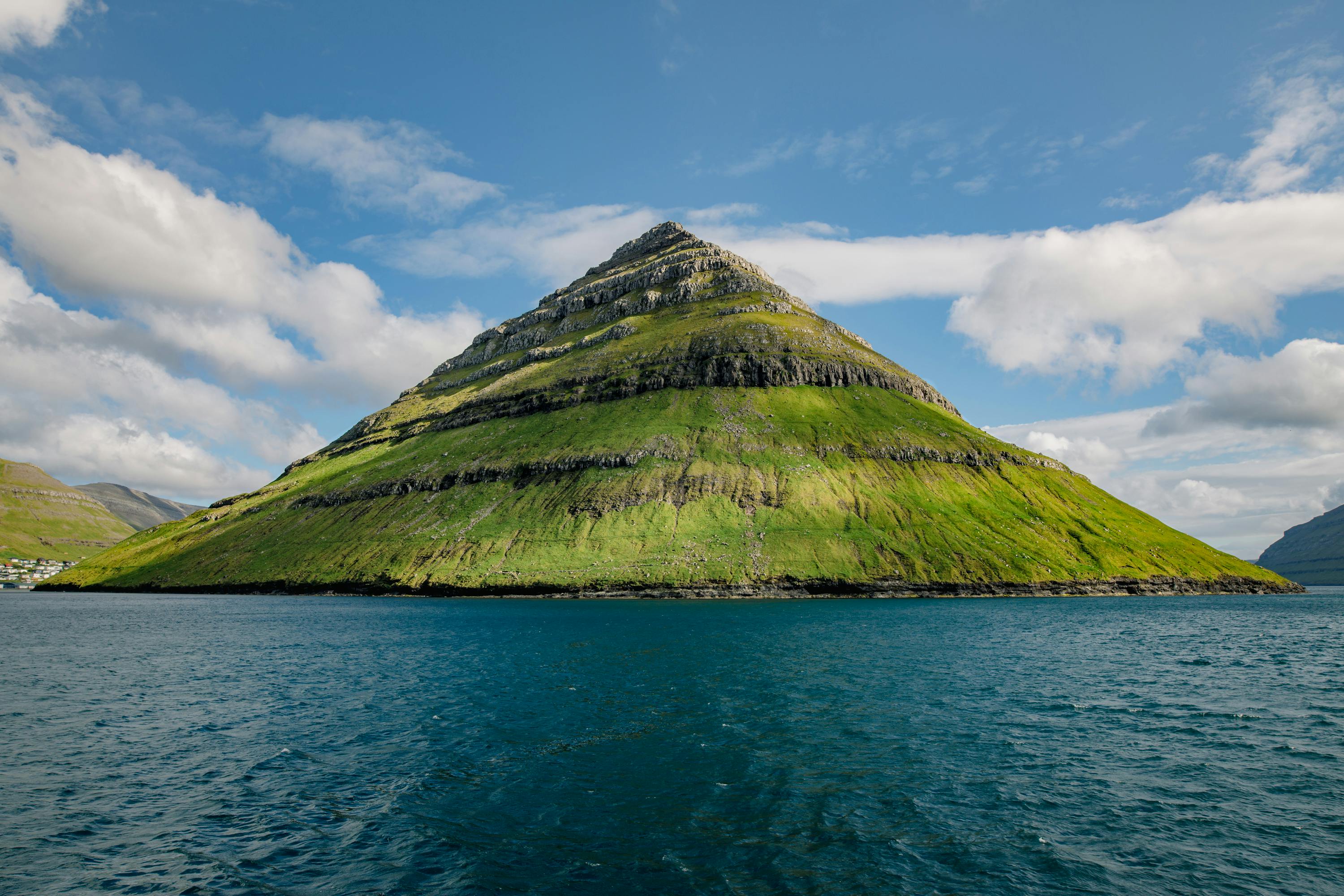 Stunning view of a mountain surrounded by the ocean in Klaksvík, Faroe Islands.